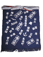 室町時代より、漁師さんが古くなった船の帆を切って、腰に巻いたことに由来すると言われている帆前掛け。
